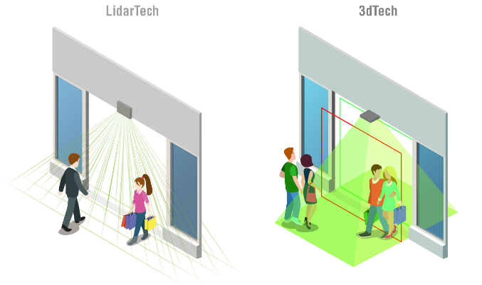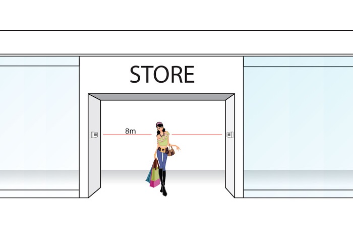 Lối vào cửa hàng của bạn càng rộng thì càng có nhiều không gian cho đám đông. Nhiều đám đông hơn có nghĩa là độ chính xác kém hơn, vì vậy bộ máy đếm người tia hồng ngoại chỉ được đề xuất cho lối vào rộng tối đa 4.5m và chỉ khi bạn không có lối vào mật độ cao. Ngoài ra, một bộ đếm hồng ngoại sẽ yêu cầu cửa chỉ xoay một chiều ra bởi vì một cánh cửa xoay vào sẽ chặn chùm tia.