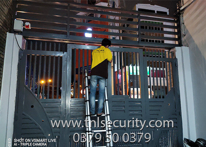 Hình ảnh lắp đặt khóa vân tay thẻ từ cho cửa cổng sắt tại quận 1