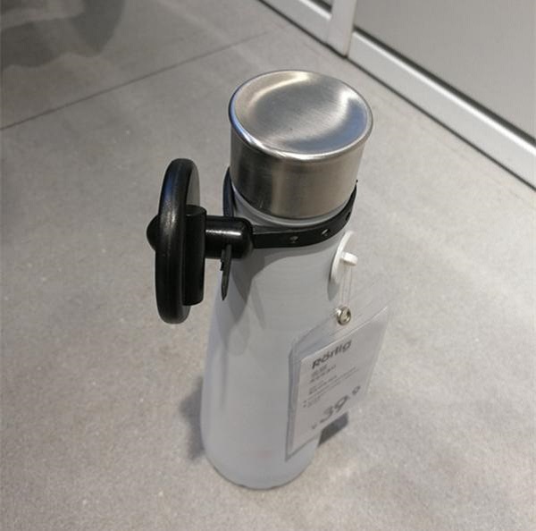 Đối với các chai khác trong siêu thị, chẳng hạn như cốc nước, chúng ta có thể chọn các kiểu tem từ cứng khác. Tất nhiên, cốc có thể được chia thành tay cầm mà không có tay cầm. Đối với cốc không có tay cầm, chúng ta có thể bọc nó bằng một tem từ cứng lớn tương tự như tem từ của chai rượu vang. Giống như cái này: