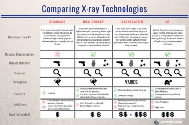 Ít người biết về 4 công nghệ tia X bao gồm: Tiêu chuẩn, Năng lượng kép, Vật chất nền và Chụp cắt lớp vi tính (CT). Những tia X này giúp giữ cho bạn an toàn và bảo vệ những người và tài sản mà bạn hứa sẽ phục vụ. Công nghệ tia X có thể là một bí ẩn đối với bạn. Nhưng chúng tôi đã tổng hợp một cái nhìn tổng quan hữu ích về X-Ray để giúp bạn bắt kịp tốc độ. Dưới đây tóm tắt những điểm khác biệt chính giữa các công nghệ tia X. Và bài đăng này giải thích chi tiết từng loại ưu điểm, nhược điểm, chi phí và cách sử dụng của chúng. Vì vậy, những người yêu thích tia X trong tương lai sau khi đọc tổng quan này, chúng tôi chắc chắn rằng bạn sẽ có ái nhìn rõ ràng hơn.