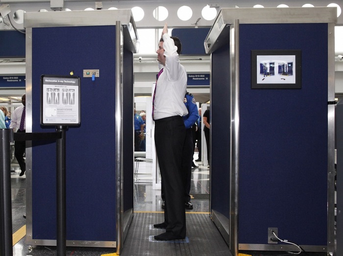 Bám sát với chủ đề du lịch, tia X tán xạ ngược thường được tìm thấy trong máy quét cơ thể ở sân bay. Tia X tán xạ ngược sử dụng hai máy dò khác nhau để đo sự hấp thụ và xuyên qua của chùm tia. Điều này tạo ra 2 hình ảnh mà nhà điều hành xem xét để tìm các đối tượng khả nghi. Đầu tiên, một hình ảnh truyền dẫn, cho thấy sự hấp thụ chùm tia X truyền thống. Hình thứ hai, một hình ảnh tán xạ ngược, hình thành khi chùm tia phản xạ trở lại máy dò. Hình ảnh truyền tải hiển thị các phần tử nặng và hình ảnh Backscatter hiển thị các phần tử nhẹ.