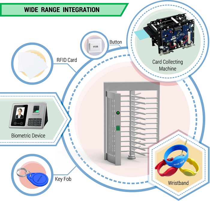 Các sản phẩm cửa lồng xoay full height có độ tin cậy cao và tích hợp liền mạch với các hệ thống của bên thứ ba. Phần mềm kiểm soát nhập học đầy đủ tính năng được sử dụng bởi các công viên giải trí hàng đầu và các sân vận động và cơ sở thể thao chuyên nghiệp. Phần mềm GateConnect cho phép các hệ thống kiểm soát truy cập của bên thứ ba dễ dàng liên lạc và kiểm soát các cửa xoay an ninh, cổng nhập học và cổng thông minh của chúng tôi.