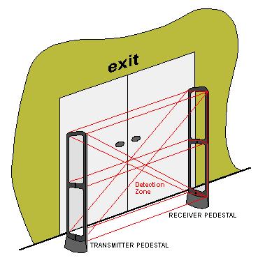 Bệ đỡ cổng từ an ninh sẽ được kích hoạt khi nhận được tín hiệu trong vùng tiếp cận. Tín hiệu từ bệ phát được phát lại bằng tem đến bệ nhận. Mặc dù các bệ đóng vai trò cảnh báo, máy phát và máy thu cũng có thể được ẩn trong lối thoát hiểm. Một số hệ thống chỉ có thể sử dụng một bệ để truyền và nhận.