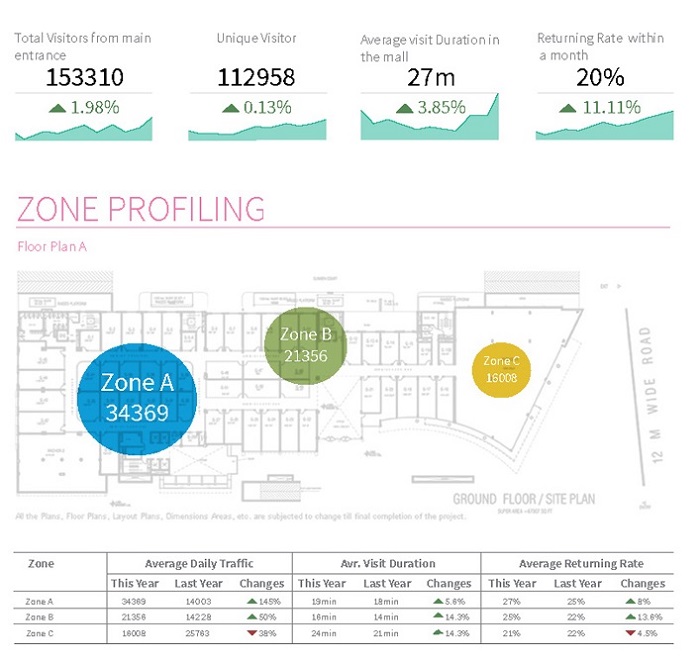 Sau khi được thu thập, dữ liệu đếm thường được gửi qua internet (gần thời gian thực) đến chủ hệ thống chủ lắp đặt để phân tích thị trường bán lẻ.