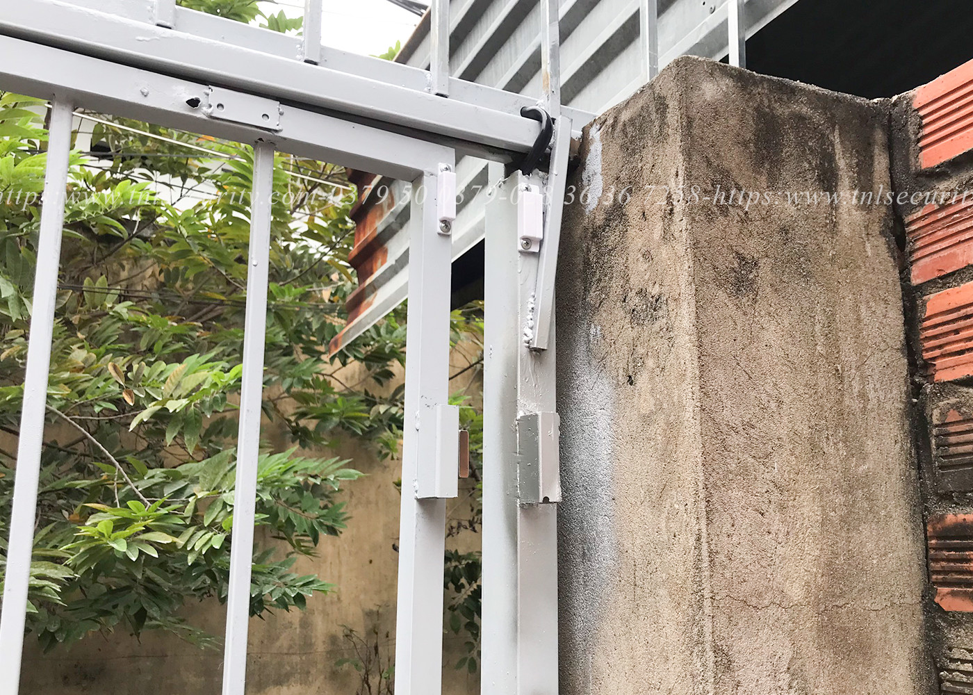 Thiết bị nhỏ nhỏ màu trắng là công tắc từ thiết bị đi kèm với báo động nhằm cảm ứng cửa mở để báo động hoạt động