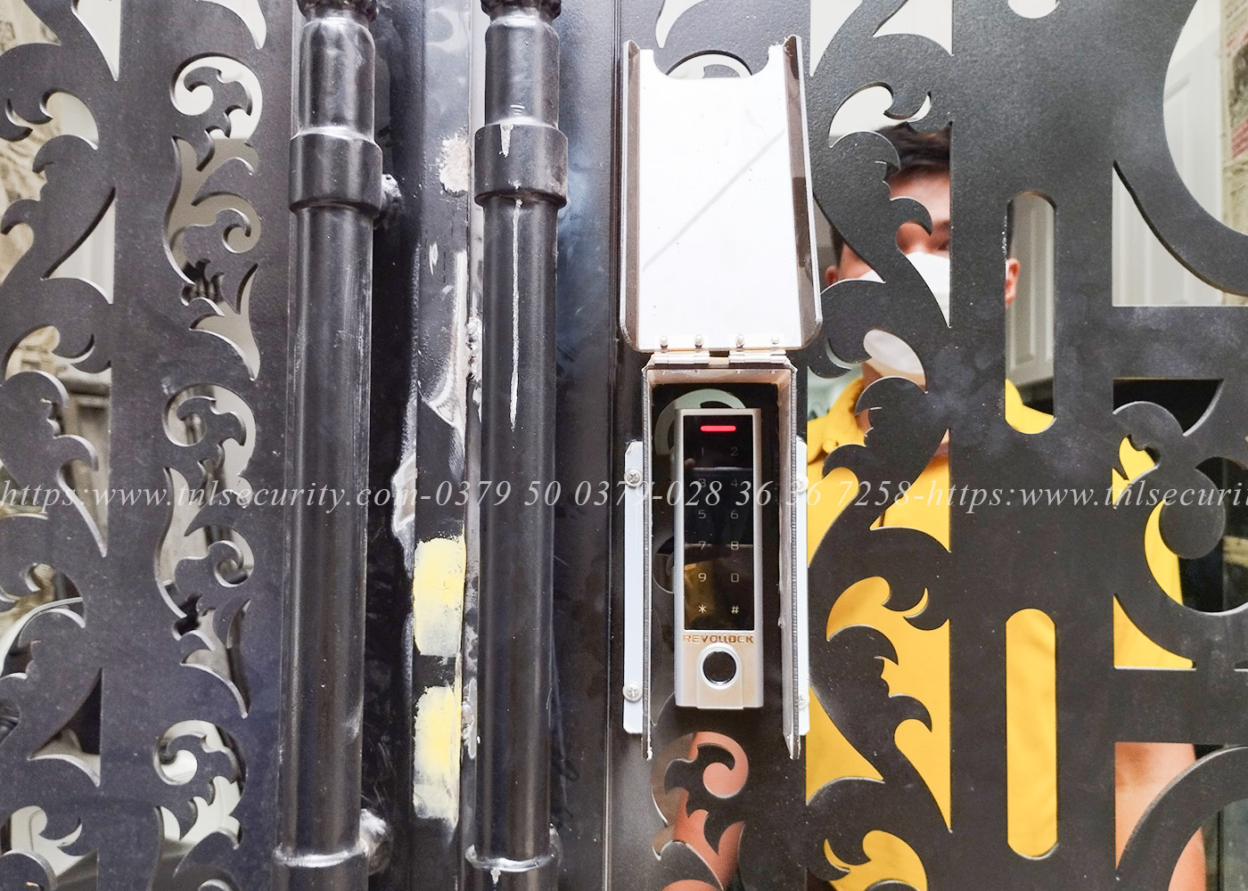 Lắp đặt khóa dùng App điện thoại vân tay cho cửa sắt hai cánh tại Tân Bình