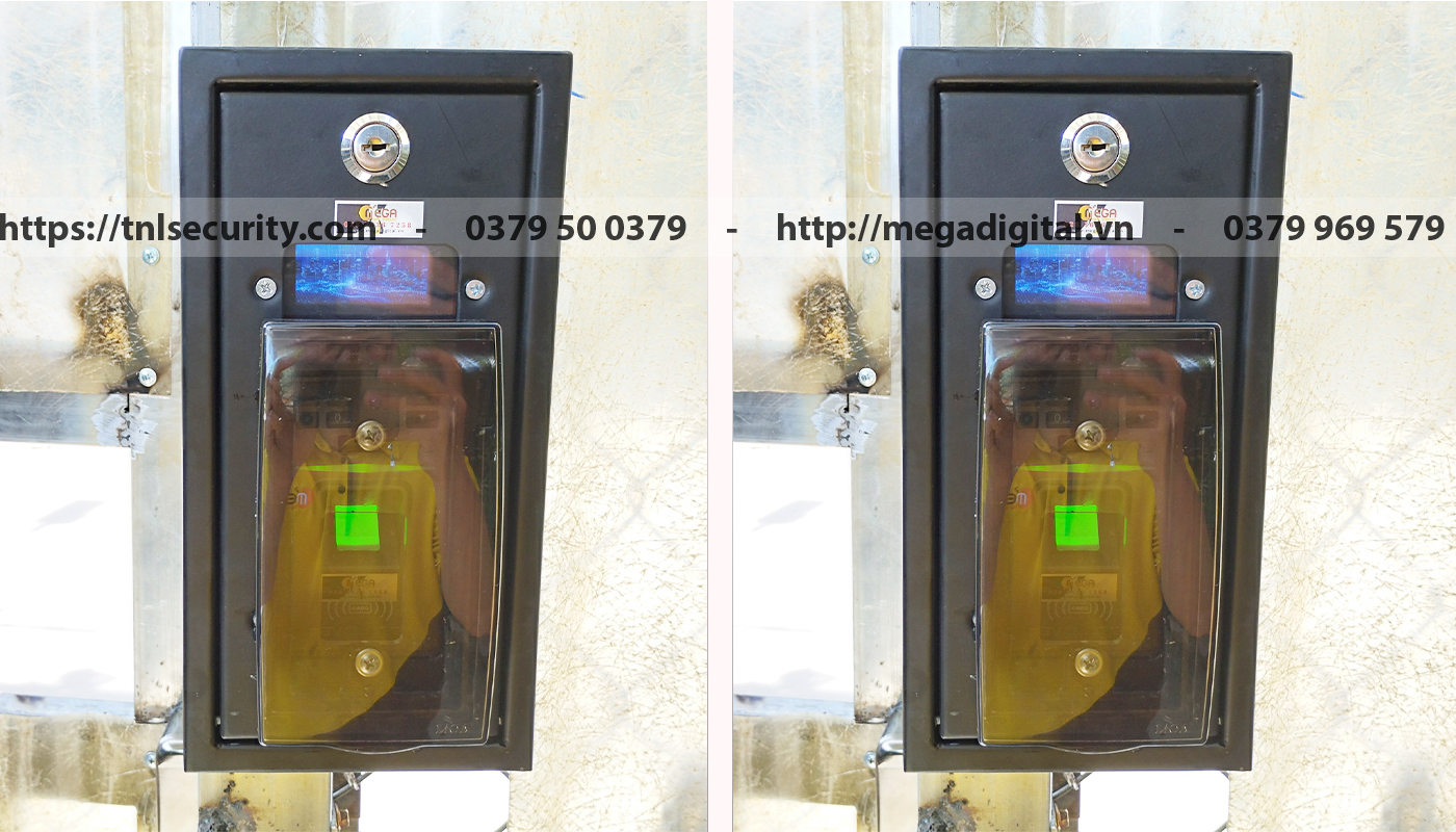 Công trình lắp bộ khóa vân tay hoàn thành, mọi thiết bị đều được đặt cố định ở một vị trí chắc chắn. Đầu đọc vân tay và bộ nguồn lưu điện đều được lắp thêm hộp bảo vệ vì thiết bị không có khả năng chống nước.