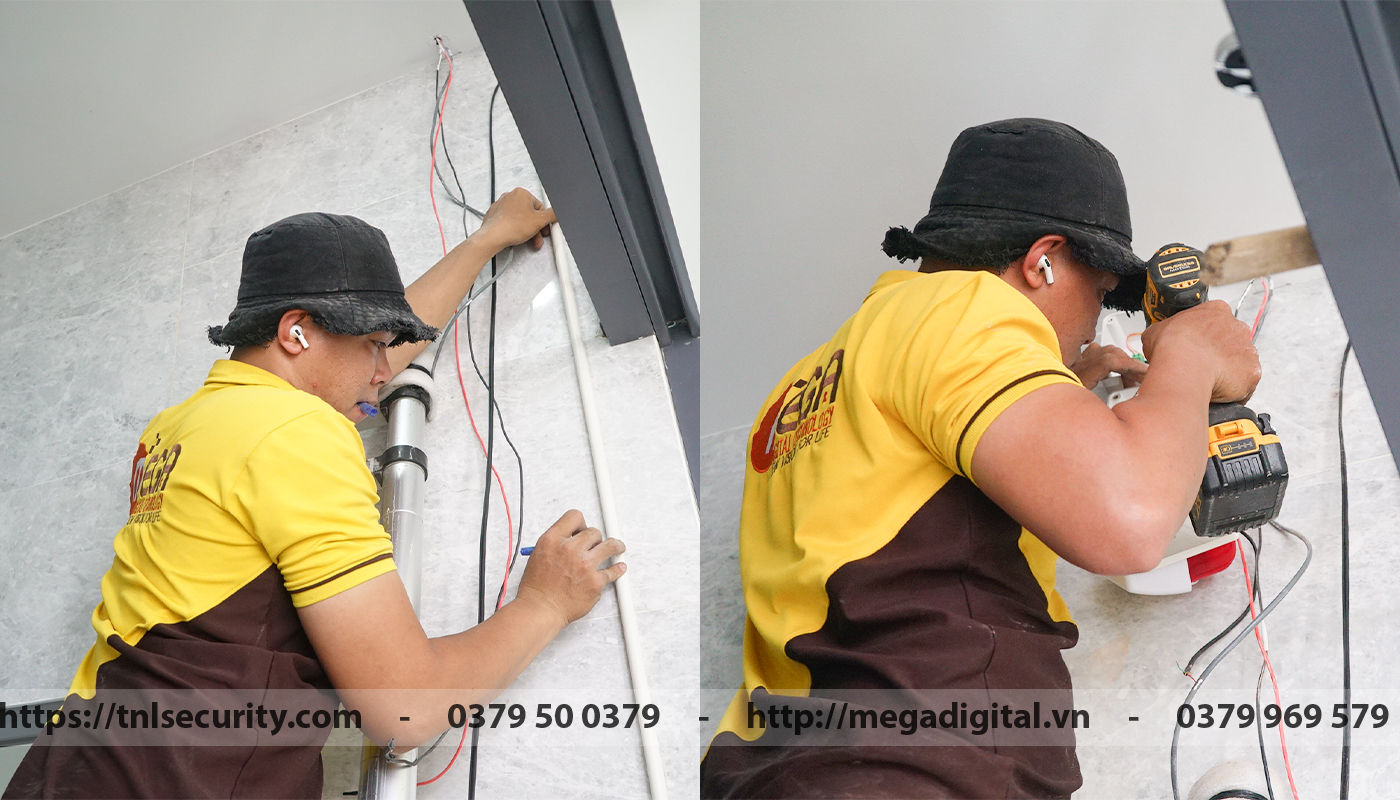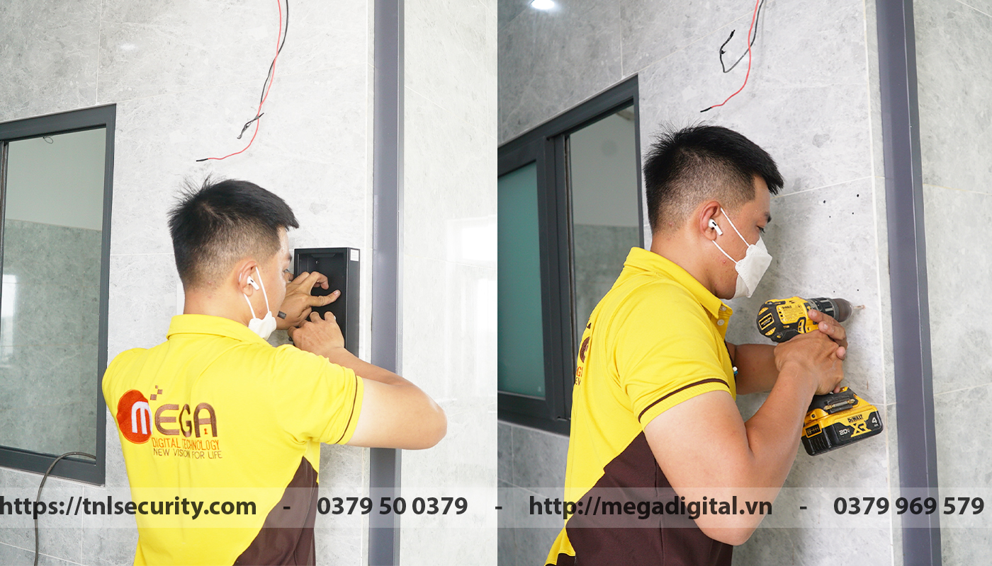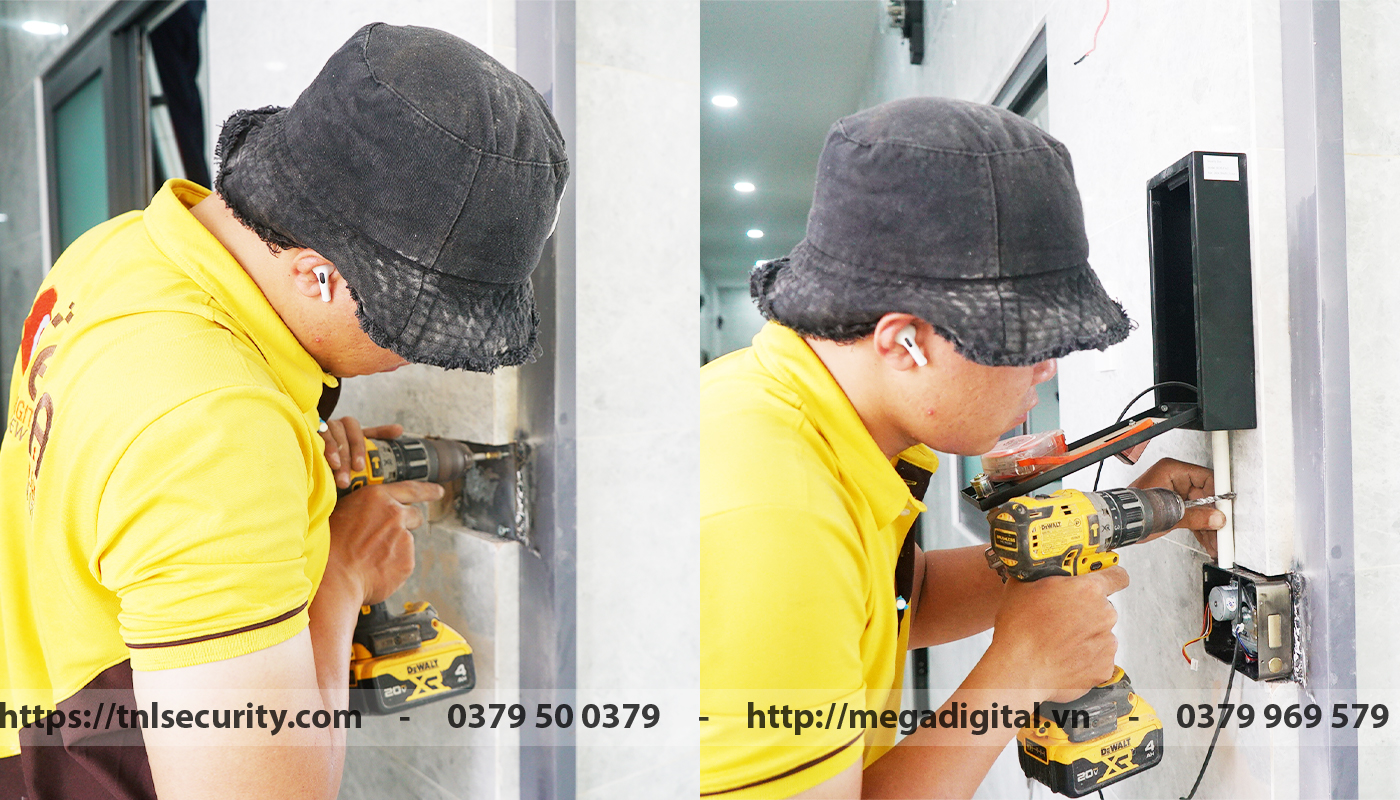 Để thực hiện lắp đặt đầu tiên kỹ thuật cần khảo sát, cân chỉnh cửa, sau đó là đo và khoan là bước đầu tiên để có được vị trí lắp thiết bị phù hợp.
