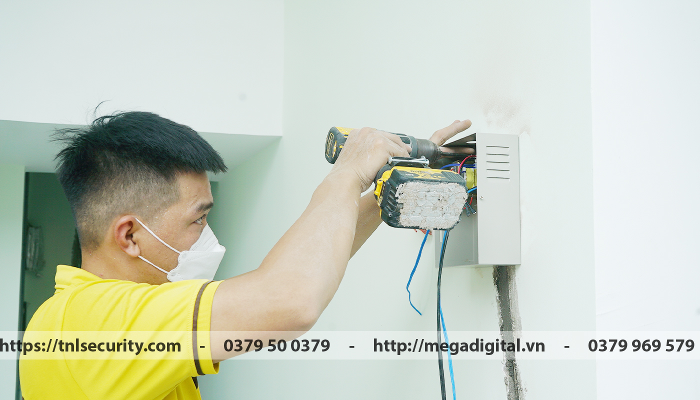 Thiết bị được lắp cuối cùng là nguồn lưu điện, kỹ thuật sẽ lắp thiết bị này tại một vị trí và gần nguồn điện chính. Nguồn này có khả năng trao đổi nguồn điện và cấp điện đến cho các thiết bị khóa.