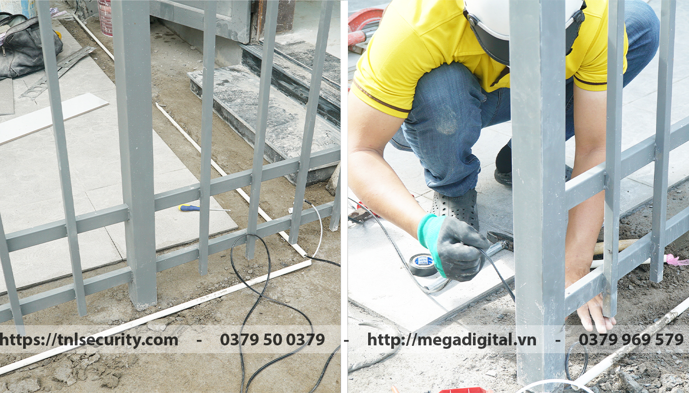 Công trình nhà trọ hiện đang được thi công chưa hoàn thành, vì vậy anh kỹ thuật chọn âm dây bên dưới đất để đảm bảo độ thẩm mỹ cho cổng. Bên ngoài dây điện được bọc bởi ống nhựa giúp an toàn cho mọi người.
