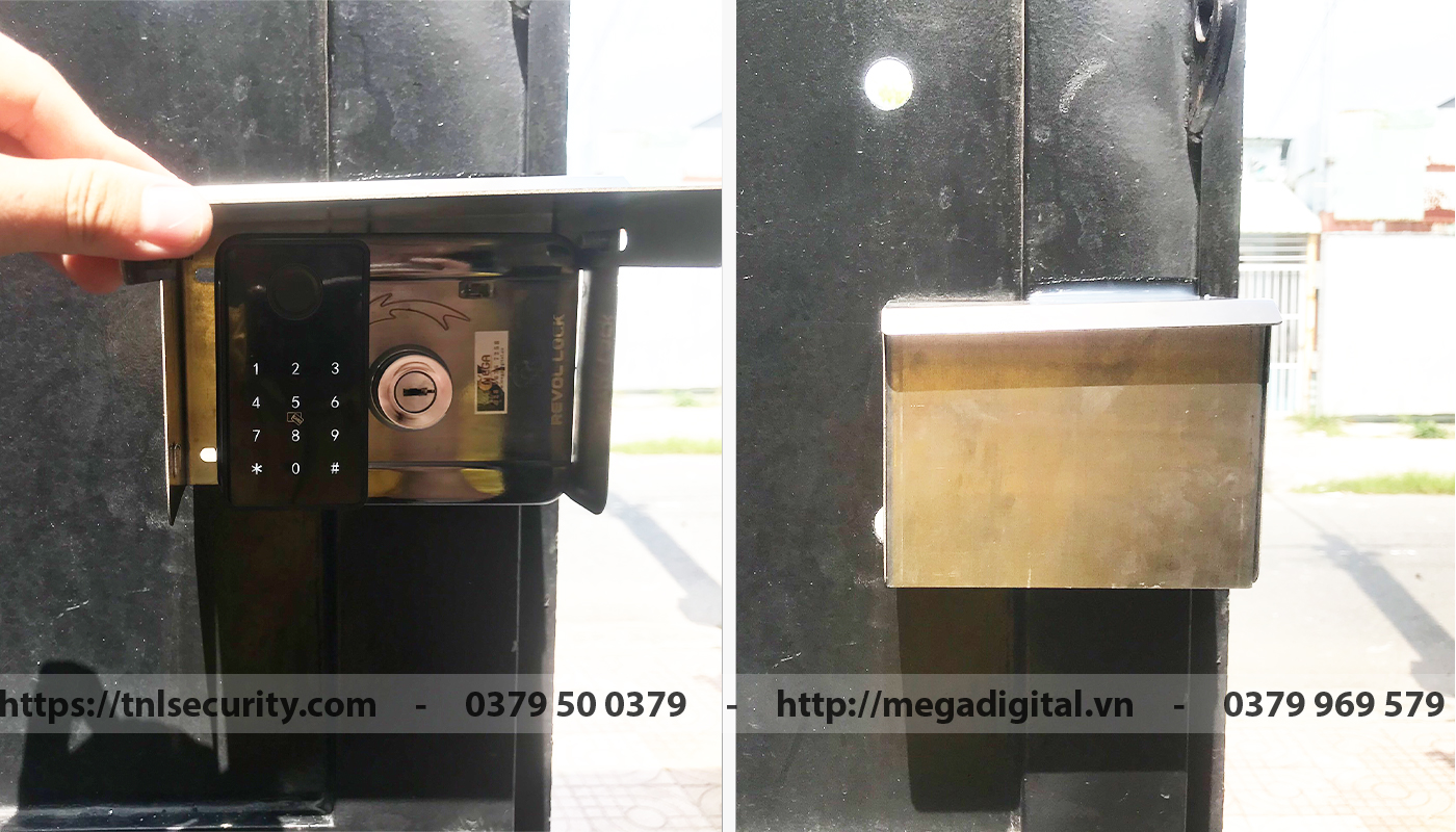 Lắp đặt khóa pin vân tay hai chiều cho cổng sắt tại Bình Chánh