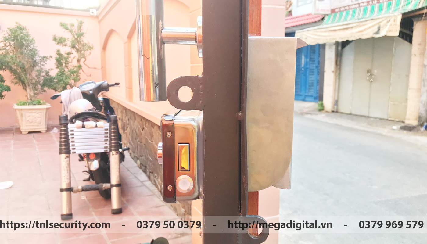 Công trình lắp khóa pin vân tay cho cửa hai cánh nhà trọ tại Quận 2