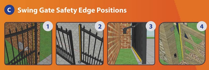Một chủ đề quan trọng khác được đề cập trong hướng dẫn là an toàn cổng. Cổng tự động có động cơ lớn và mạnh mẽ, vì vậy điều quan trọng là phải có các biện pháp phù hợp để bảo vệ người sử dụng và các thành viên của công chúng, bao gồm cả trẻ em. Hướng dẫn giải thích cách thực hiện đánh giá rủi ro, sau đó cài đặt tất cả các biện pháp cần thiết để tuân thủ các tiêu chuẩn và hướng dẫn mới nhất. Vì các cổng được cấp nguồn được phân loại là 'máy móc' nên các cổng cũng được đánh dấu có thành phần nguy hiểm khi gặp trục trặc.