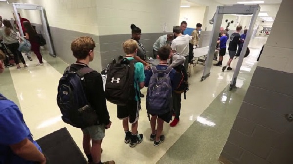 Một khu học chính đang xem xét việc sử dụng cổng dò kim loại cầm tay, với cổng dò cho các trường trung học cơ sở và trung học. Các thành viên cộng đồng và các quan chức thường khám phá các biện pháp như vậy sau khi có rất nhiều vi phạm đã được thực hiện hoặc họ nhận thấy xu hướng trong các hành vi bạo lực đang xảy ra trong trường học của họ.
