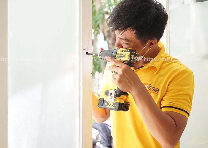 Trước khi lắp đặt khóa vân tay cho nhà xe, kỹ thuật viên sẽ tiến hành khảo sát vị trí. Sau khi đo đạc khoảng cách từ cửa đến khóa, kỹ thuật bắt đầu cắt và hàn sắt để gắn khóa lên để có thể thiết lập khóa vân tay...