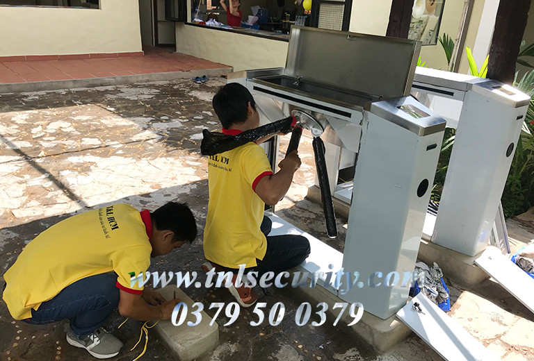 Cổng xoay Tripod sẽ được nhân viên kỹ thuật đo khoảng cách, đấu nói các dây với nguồn điện để cho cổng có thể hoạt động.