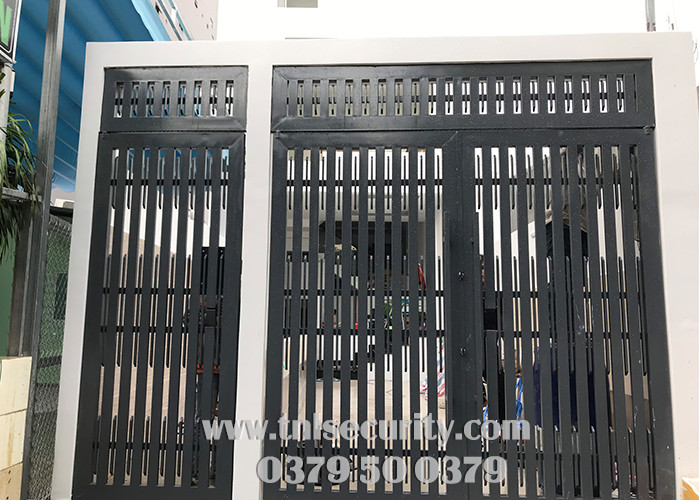 Đây là cửa cổng khi chưa được lắp đặt và cửa này làm bằng sắt nên chúng tôi sẽ tiến hành khoan cắt để đi đường dây bên trong cửa sắt này.