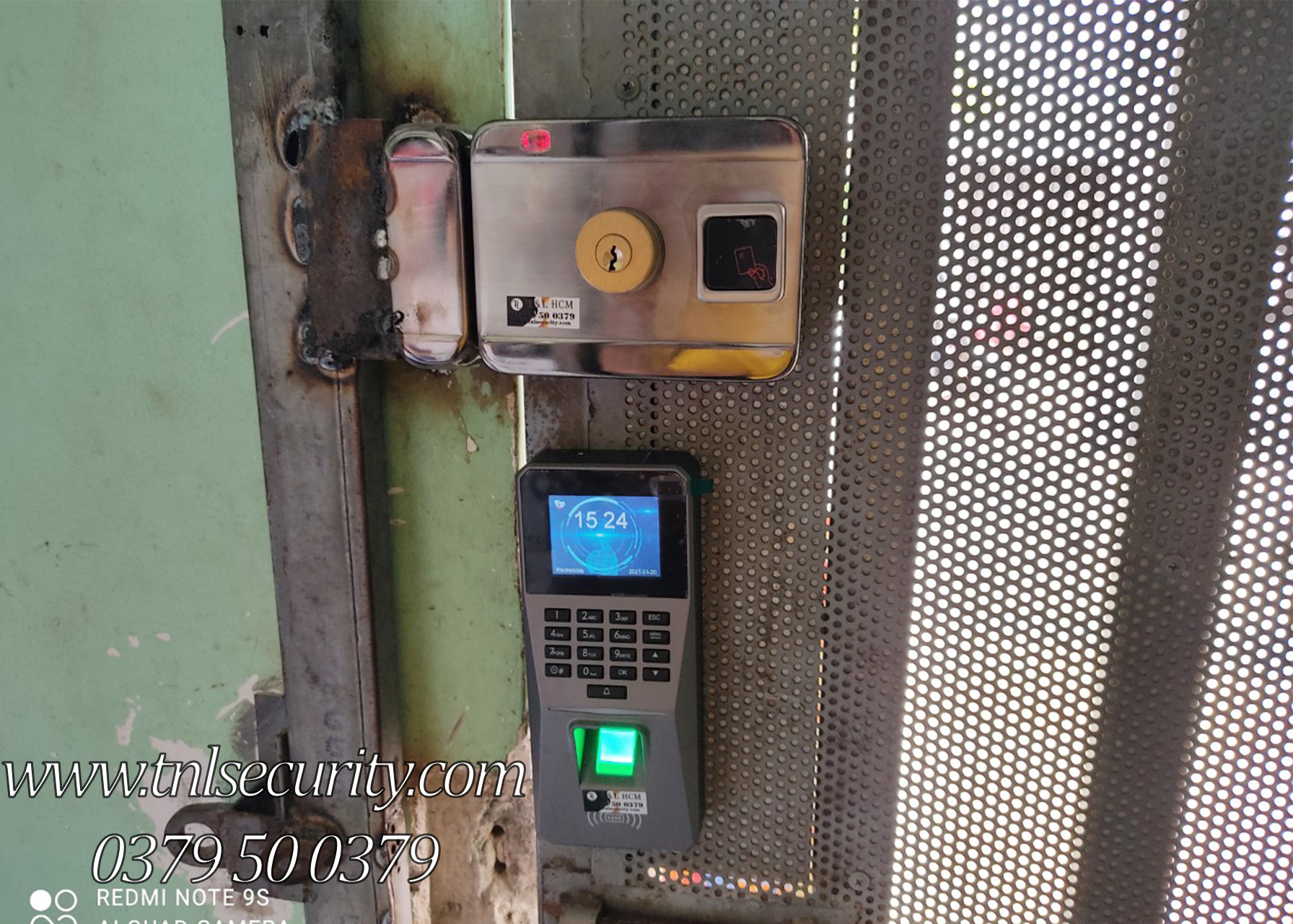 Hình ảnh lắp đặt khóa cổng vân tay kèm báo động