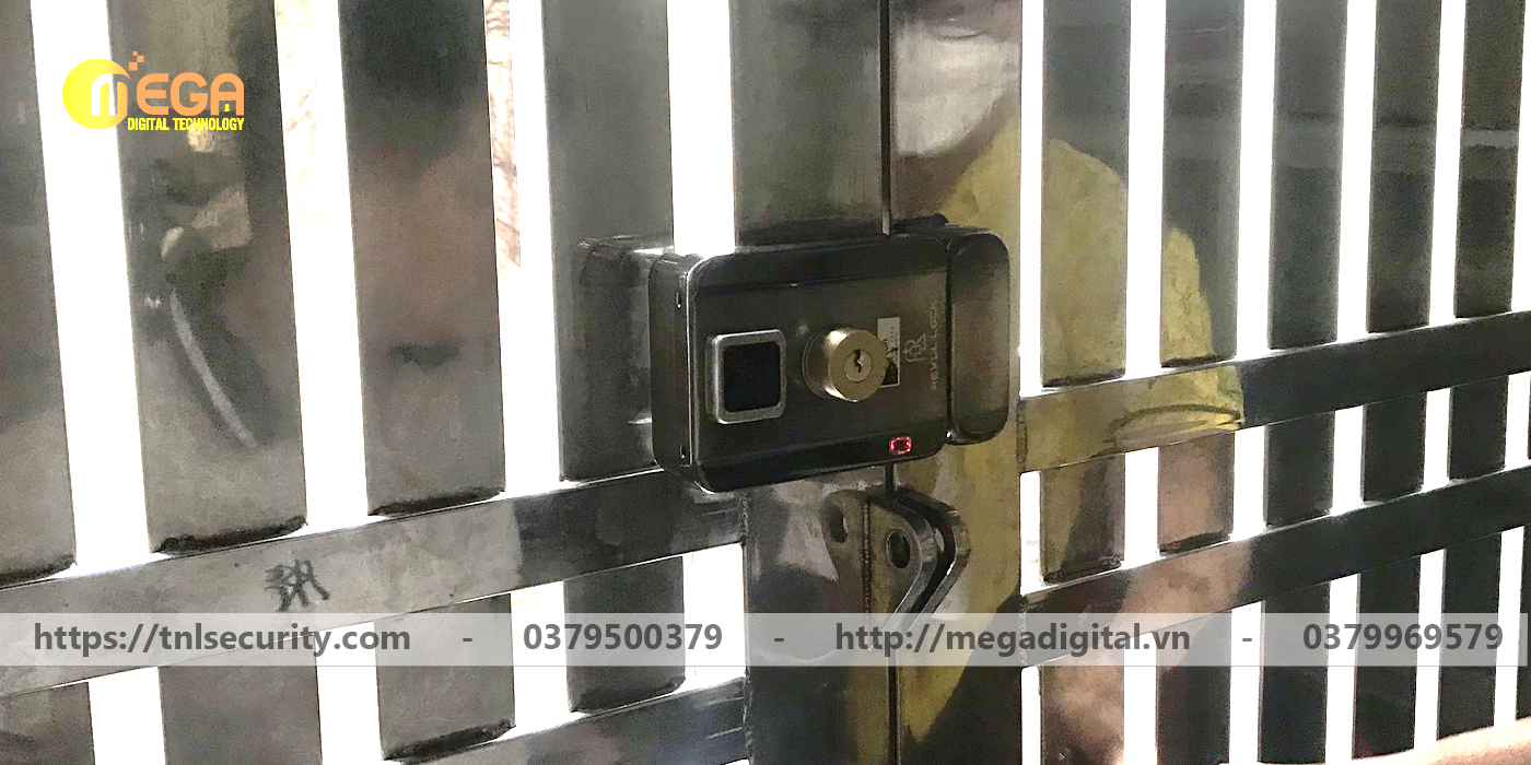 Lắp đặt khóa dùng app điện thoại vân tay cho cửa sắt hai cánh tại Tân Bình