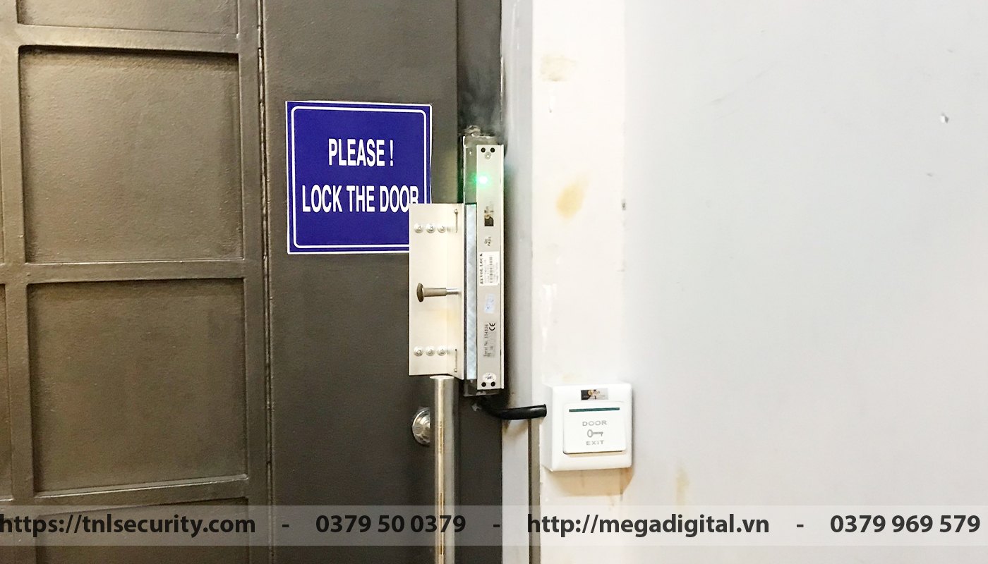 Khóa nam châm là thiết bị được cài đặt thêm cho cửa chắc chắn với lực hút 280kg khó có thể đẩy hay cạy cửa. Thiết bị này tăng an ninh cho người dùng trong khu vực. Kèm theo đó chủ nhà đã chọn lắp thêm nút nhấn exit cho bên trong, người dùng chỉ cần nhấn nút exit là có thể ra ngoài.