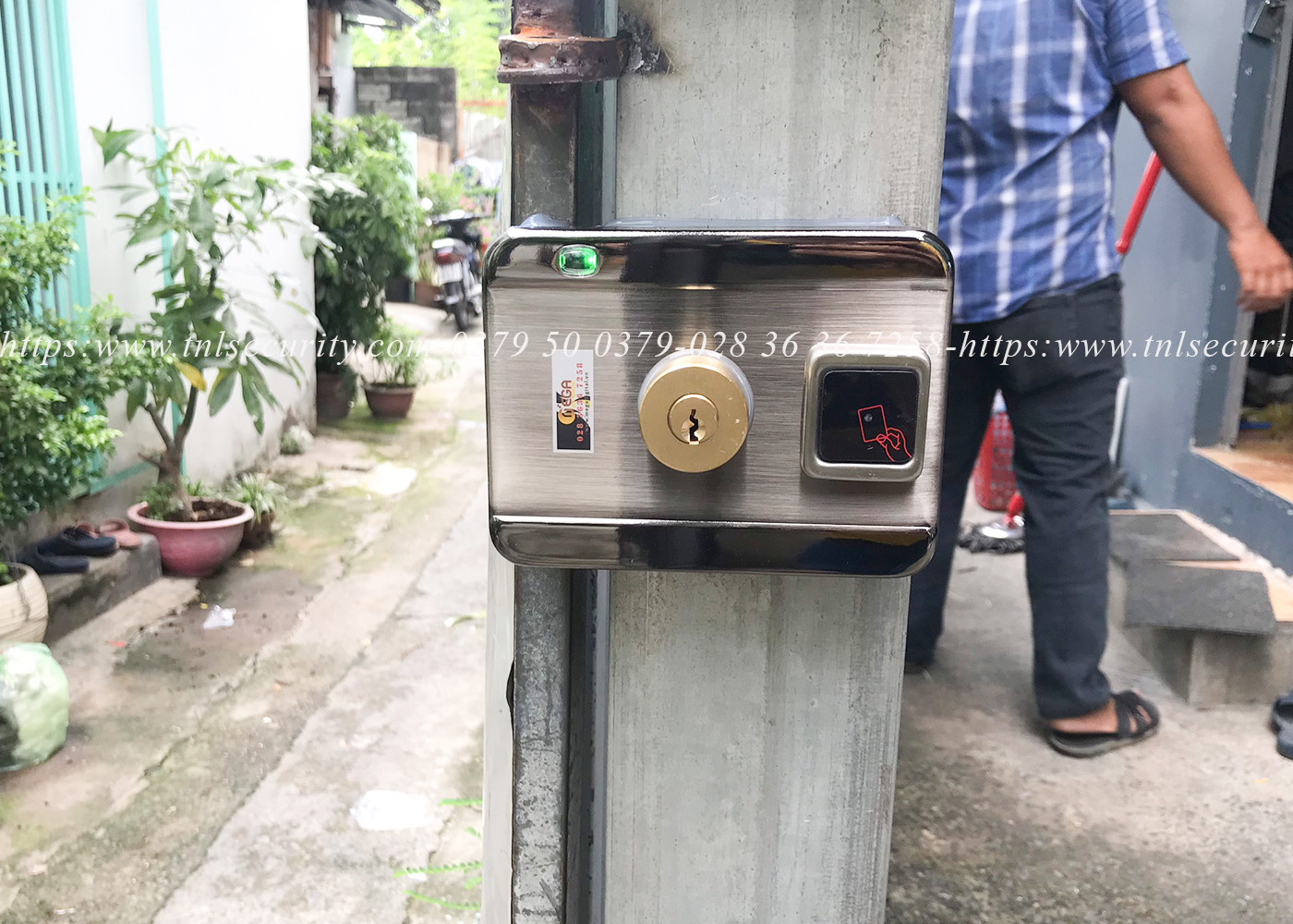 Lắp đặt khóa cổng vân tay báo động chất lượng tại Mega