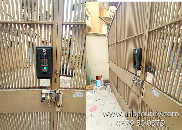 Hình ảnh lắp đặt khóa vân tay cho cửa sắt 4 cánh