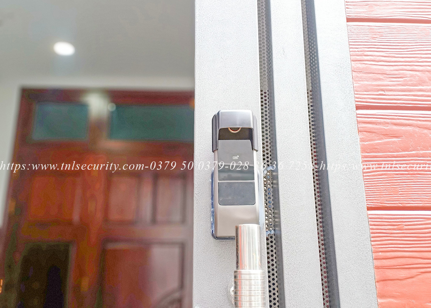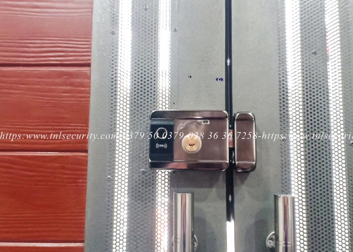 Hình lắp đặt khóa vân tay hai chiều dùng pin cho cửa sắt tại Tân Sơn