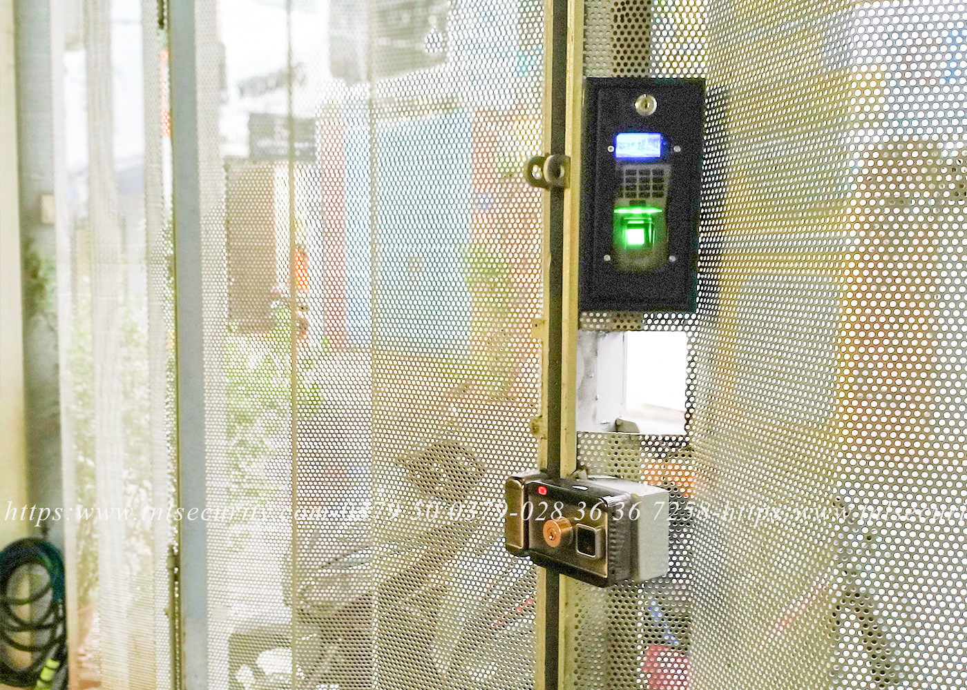 Tổng bộ khóa được lắp đặt với những thiết bị như khóa chốt, đầu đọc vân tay bằng quang, hộp bảo vệ vân tay, báo động nhắc quên đóng cửa và nguồn chuyển đổi dòng điện 12V. Sau khi bộ khóa vân tay được chọn xong thì chúng sẽ được kỹ thuật lắp đặt với những hình ảnh cho bộ khóa cổng sắt như hình dưới đây.