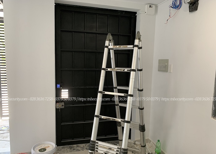 Cuối cùng là nguồn điện trong nhà được đặt trên cao, các đường dây từ khóa đến nguồn sẽ được đi âm hoặc đi ruột gà để bộ khóa vân tay trong nhà trông thẩm mỹ hơn. Với những hình ảnh trên có thể thấy bộ khóa được lắp đặt hoàn hảo phù hợp với cửa cổng một cánh này.