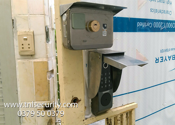 Hình ảnh lắp đặt khóa vân tay xài bằng pin