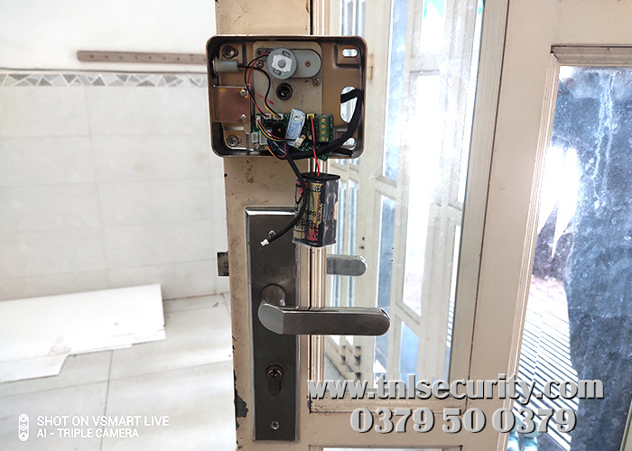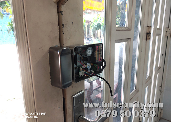 Với bộ khóa vân tay xài bằng pin mà anh đã chọn thì chúng tôi sẽ tiến hành lắp đặt. Quá trình lắp đặt không tốn qua nhiều thời gian, các kỹ thuật viên chỉ cần lắp lên và nối các đường dây giữa khóa chính và đầu đọc vân tay thì sẽ hoàn thành. Sau đây là một số hình ảnh khi khóa vân tay được lắp đặt xong, các bạn hãy xem và đánh giá nhé.