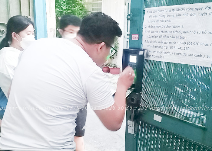 3/ Lắp đặt khóa cổng vân tay dùng pin cho anh Huy chủ nhà tại Gò Vấp