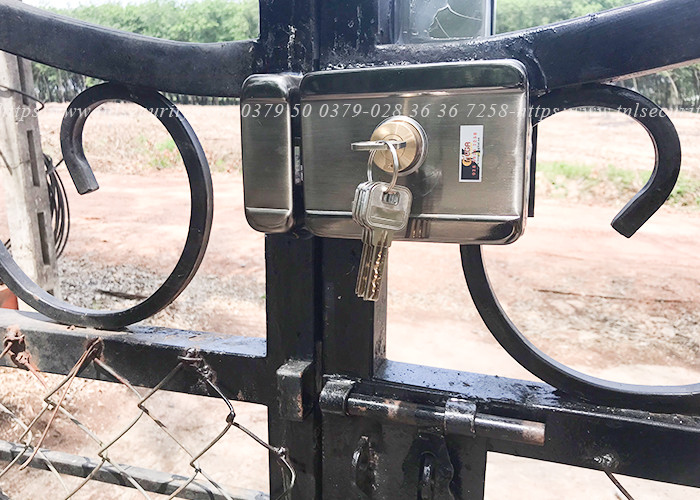 Bộ thứ 2 được lắp tại cổng sau, với khóa pin việc lắp đặt cũng dễ dàng và nhanh chóng hơn vì không cần phải đi dây. Bạn cần chú ý khi sử dụng khóa pin tránh để nắng mưa làm ảnh hưởng đến khóa.