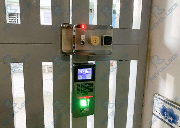 Như hình ảnh trên có thể thấy bộ khóa cổng vân tay được lắp đặt cho cửa sắt đều được đặt bên trong và khi bên ngoài muốn vào thì có lỗ lòng tay đưa vào bên trong để mở cửa. Vì vậy người dùng có thể sử dụng vân tay hai chiều mà không cần tốn nhiều chi phí cho hai chiều và chúng cũng an toàn hơn khi được đặc bên trong.