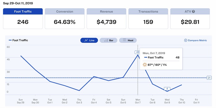 Khi xem xét dữ liệu lưu lượng khách bán lẻ, bạn có thể xác định thời điểm cửa hàng của mình bận rộn so với thời điểm kinh doanh chậm. Với kiến thức này, bạn có thể đưa ra quyết định sáng suốt về cách thu hút người mua sắm đến cửa hàng của bạn khi lưu lượng truy cập và doanh số bán hàng đang chậm lại. Có lẽ bạn có thể tạo một chương trình khuyến mại thưởng cho khách hàng đã mua hàng vào một buổi chiều giữa tuần hoặc quảng cáo một sự kiện tại cửa hàng để tạo ra sự quan tâm vào thời điểm mà những người mua sắm sẽ tránh xa.
