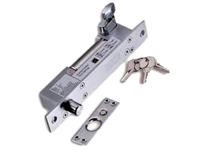 Bộ phận giữ lò xo trên đòn khóa cổng điện tử điều khiển chốt của khóa hoặc phần cứng. Khi quyền truy cập được cho phép, chốt có thể được kéo qua bộ phận giữ, do đó cửa có thể được mở. Khi chốt được khóa an toàn, chốt chính của khóa sẽ giữ chặt và ngăn cửa mở. Trong hầu hết các trường hợp, một phím có thể được sử dụng để rút chốt từ chốt an toàn của cửa để cho phép truy cập nếu cần. Do khóa hoặc phần cứng hoạt động độc lập với khóa cổng điện tử, bạn có thể thoát bằng cách xoay cần gạt hoặc đẩy bàn di chuột của phần cứng, bất kể khóa cổng điện tử hay khóa điện từ.