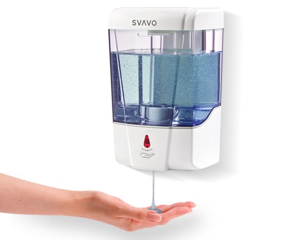 Một hộp khử trùng gel tự động cung cấp một liều thuốc khử trùng tay không tiếp xúc và ngăn chặn sự xâm nhập trừ khi thuốc khử trùng đã được sử dụng.