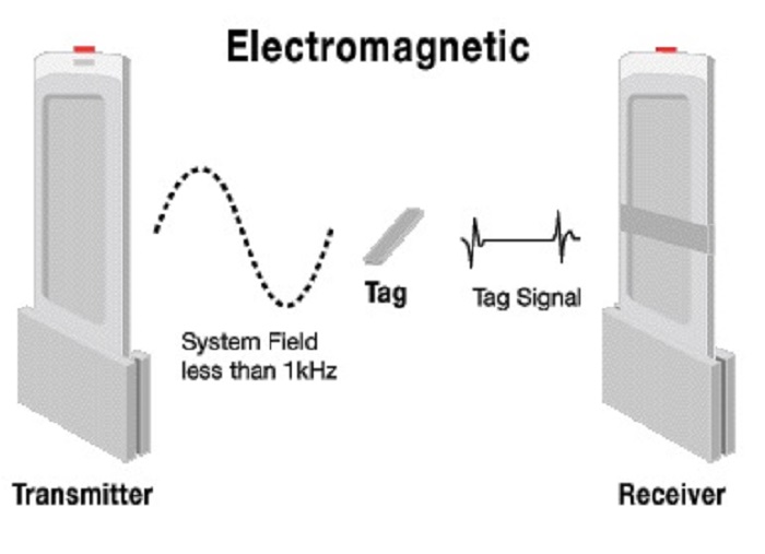 Khi vật liệu sắt từ bị từ hóa, nó làm lệch dải kim loại vô định hình thành bão hòa, nơi nó không còn tạo ra sóng hài. Do đó, việc hủy kích hoạt các tem này được thực hiện bằng từ hóa. Kích hoạt yêu cầu khử từ. Do hệ thống có thể tắt và kích hoạt lại (khử và nạp cho tem từ) nên loại hệ thống này cực kỳ phù hợp cho các thư viện. Do kích thước thuận tiện của các tem từ và chi phí rất thấp, hệ thống này phổ biến trong các thư viện.