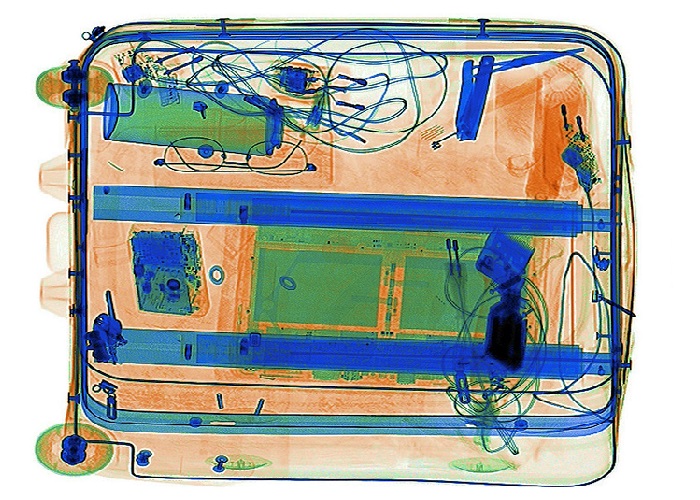 Tại sân bay, hành lý xách tay của bạn được đặt trên một băng chuyền sau đó được đưa qua máy chụp X-ray. Điều này thường được biết đến hoặc được gọi là máy soi hành lý. Tia X giống như một tia sáng chỉ có nó chứa nhiều năng lượng hơn nên nó có thể truyền qua nhiều lớp vật. Hệ thống an ninh tia X tại sân bay dựa trên những gì được gọi là hệ thống tia X năng lượng kép. Điều này bao gồm một nguồn tia X duy nhất sau đó sẽ phát ra một số tia X thường nằm trong vùng 140-160 KVP (đỉnh kilovolt). KVP là một chỉ số về lực xuyên qua của tia X. Chỉ số KVP càng cao thì độ xuyên thấu của tia X càng sâu.