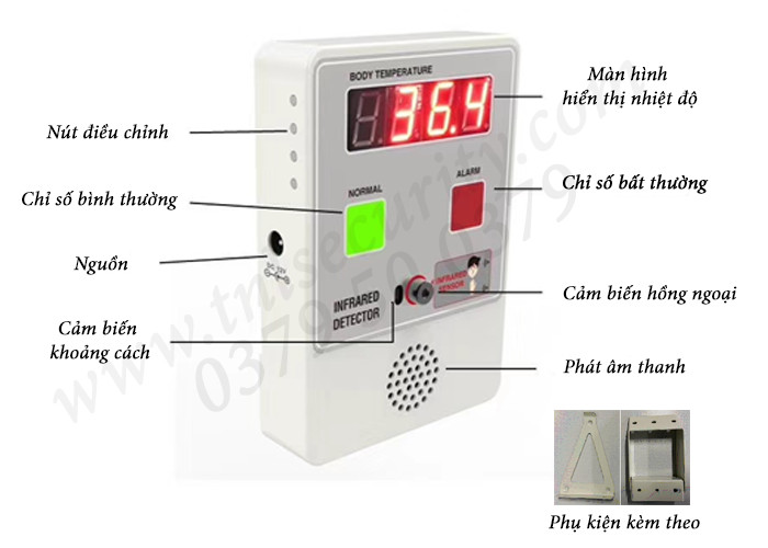 Máy đo nhiệt độ sử dụng công nghệ độc đáo phát hiện nhiệt độ bề mặt hồng ngoại không cần tiếp xúc cơ thể người, được sử dụng để phát hiện nhiệt độ bề mặt cơ thể người thông qua cảm biến đo nhiệt độ chính xác cao được nhập khẩu từ Bỉ. Nó có chức năng cảnh báo bằng giọng nói về nhiệt độ cơ thể bất thường. Có thể ngăn ngừa hiệu quả sự lây lan của dịch bệnh quy mô lớn, có thể được sử dụng riêng biệt hoặc tích hợp rộng rãi khi đi qua máy dò kim loại, cửa thông thường, hệ thống kiểm soát truy cập thông minh về đo nhiệt độ, thiết bị khử trùng và thiết bị khác cần tích hợp chức năng đo nhiệt độ.