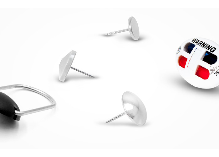 Ngoài các hình dạng khác nhau, các đầu ghim có kích thước khác nhau cũng có sẵn để ngăn những tên trộm buộc đầu ghim xuyên qua một mặt hàng quần áo. Đầu ghim lớn hơn được coi là an toàn hơn vì việc loại bỏ chúng bất hợp pháp liên quan đến việc cắt hoặc xé một món đồ.