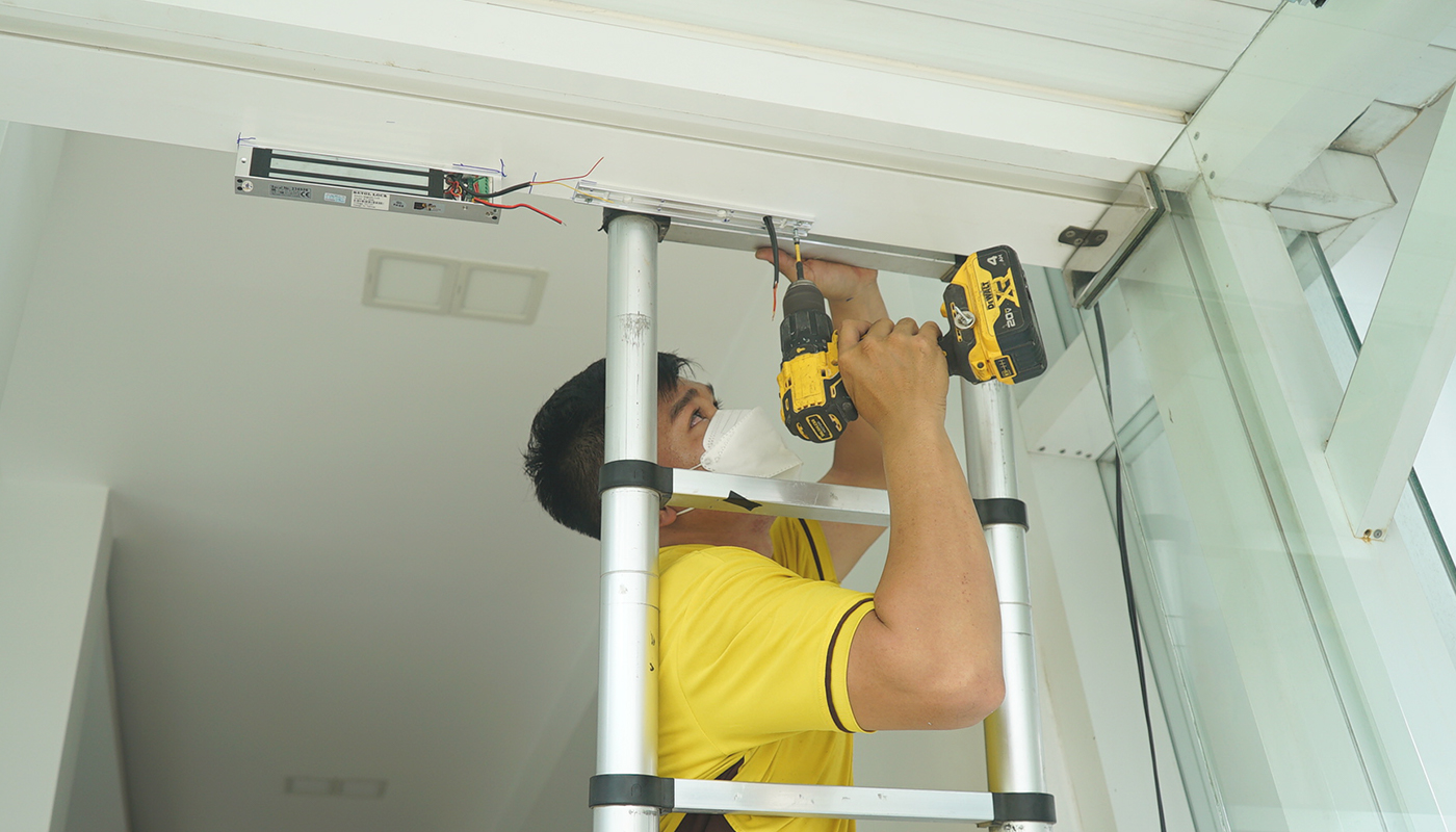 TIẾN HÀNH LẮP ĐẶT KHÓA NAM CHÂM ĐIỆN TỪ CHO CỬA KÍNH