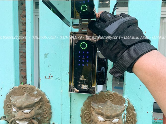 Lắp đặt khóa cổng vân tay dùng pin một chiều kèm nút nhấn cho chủ trọ quận 9: