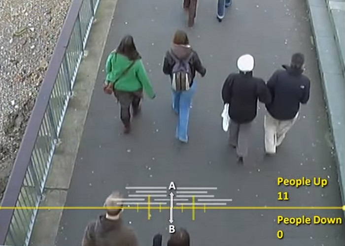 Camera quan sát được gắn phía trên đường phố để theo dõi chuyển động của mọi người. Máy đếm người thông minh được kết nối với camera ghi lại số lượng người đi bộ vượt qua tầm nhìn của camera. Những người được ủy quyền có thể xem thông tin đặt chân họ cần qua internet, trong thời gian thực nếu cần phân tích video cục bộ giảm thiểu việc sử dụng băng thông.