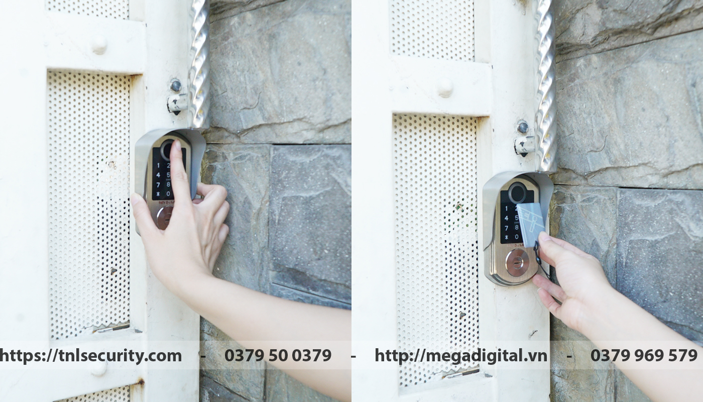 Đầu đọc vân tay được lắp mặt ngoài cửa, và với thiết bị này người dùng có thể mở khóa bằng vân tay, thẻ từ, mật mã, chìa cơ.