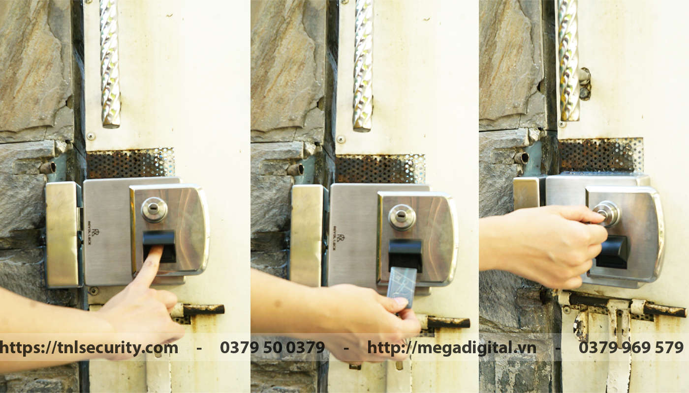 Khóa điện tử sau khi lắp hoàn thành, với thiết bị này người dùng có thể mở khóa bằng vân tay, thẻ từ và chìa cơ để mở khóa.