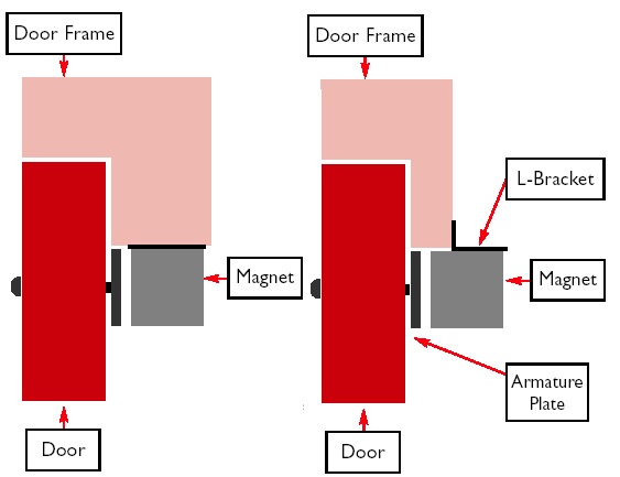 Với khóa điện từ thì người sử dụng luôn muốn được trang bị bên trong cửa chứ không phải bên ngoài. Vì vậy, tùy thuộc vào hướng của cửa mở vào trong hoặc mở ra ngoài và không gian có sẵn phía trên cửa, bạn phải thực hiện lựa chọn giá đỡ phù hợp để gắn phù hợp với maglock.