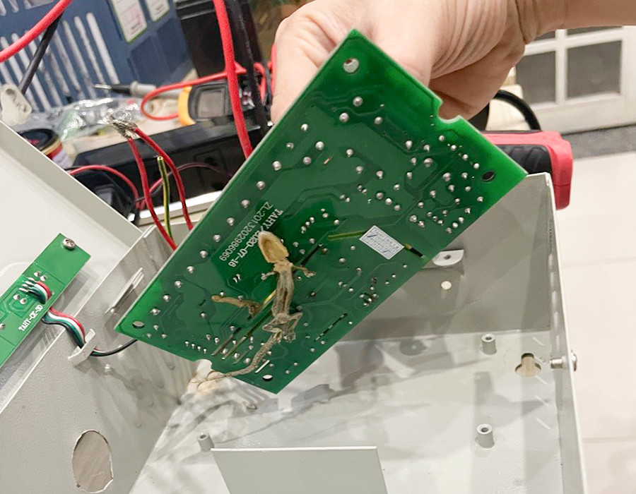Hình ảnh thằn lằn chui vào bộ nguồn