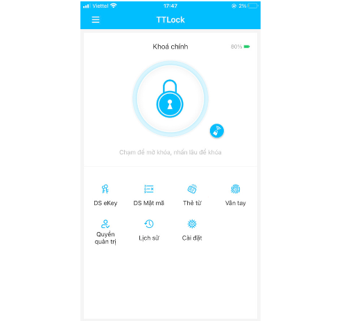 - Dễ dàng quản lý: Với khóa pin vân tay người dùng sẽ được quản lý qua app điện thoại. Khi thêm, xóa người dùng hay thậm chí là xem lịch sử ra vào đều được thao tác qua app bằng tiếng Viêt.