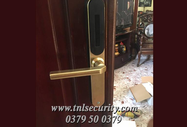 Khóa cửa điện tử thông minh được Công ty khóa cửa điện tử thông minh T&L lắp đặt một cách cẩn thận, tỉ mỉ, không làm ảnh hưởng đến kết cấu của cửa gỗ.